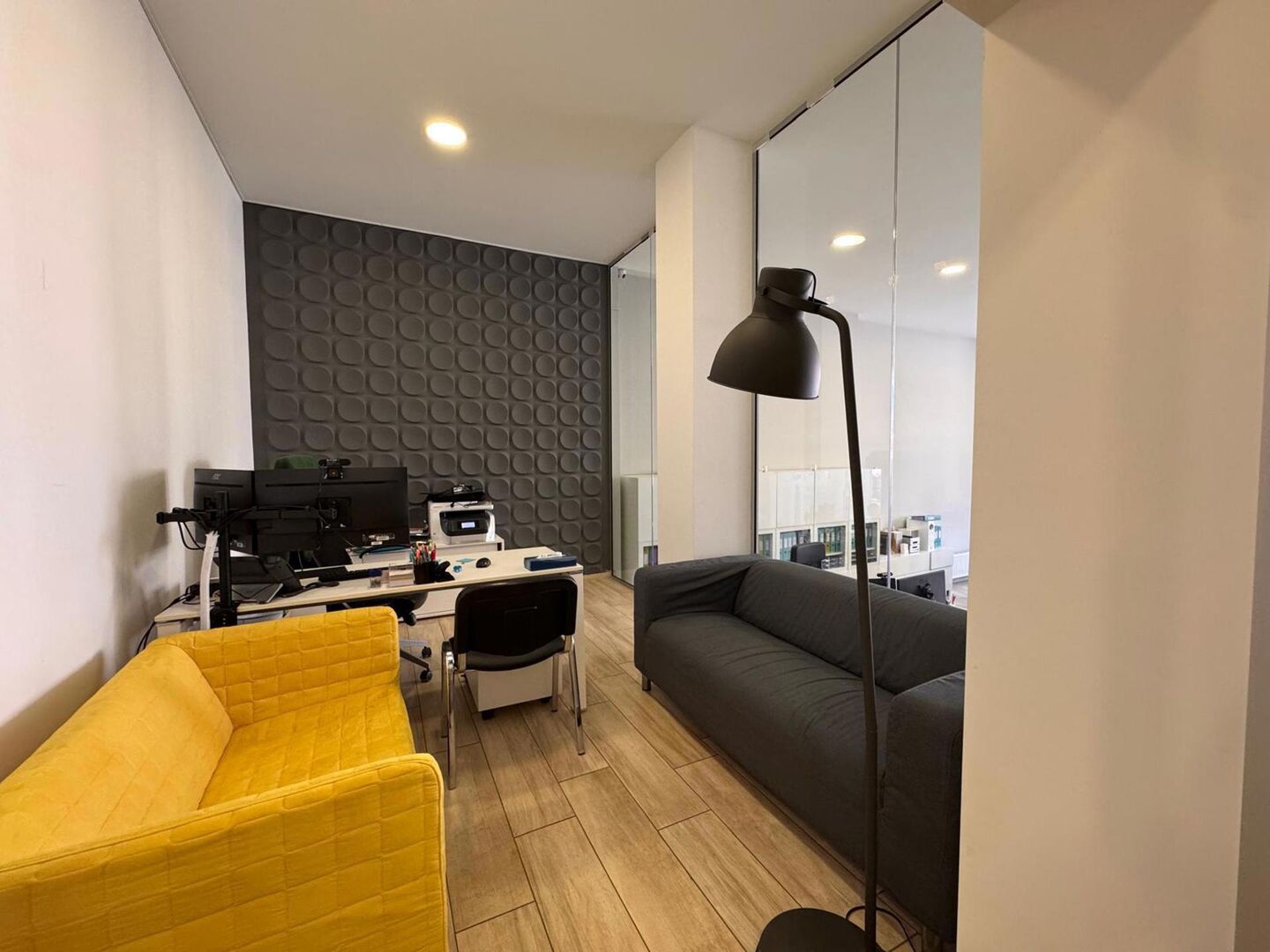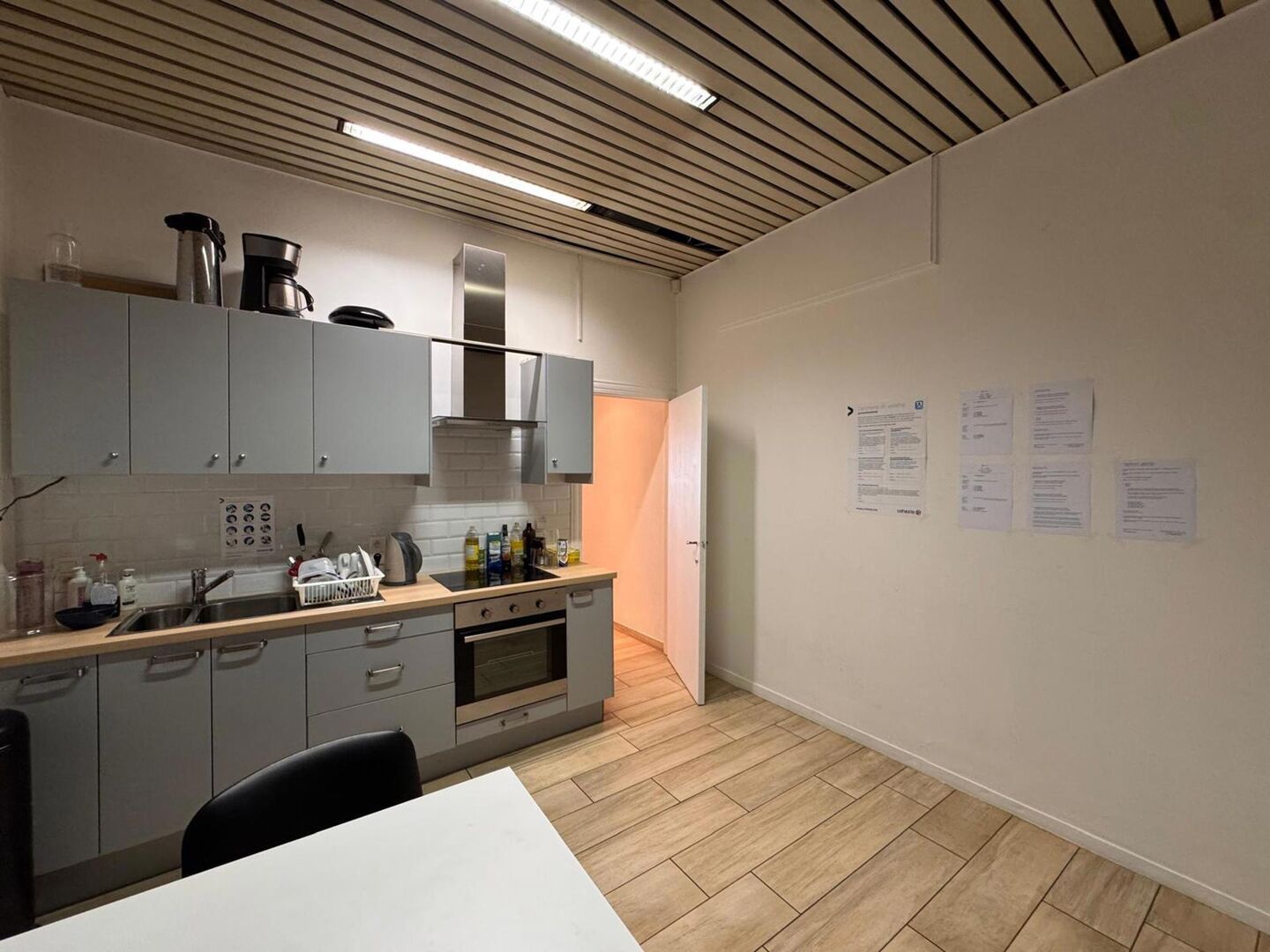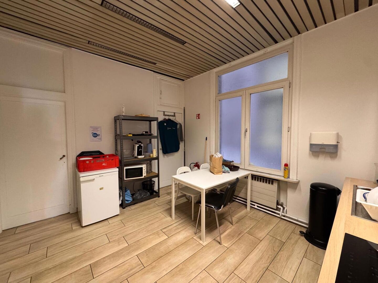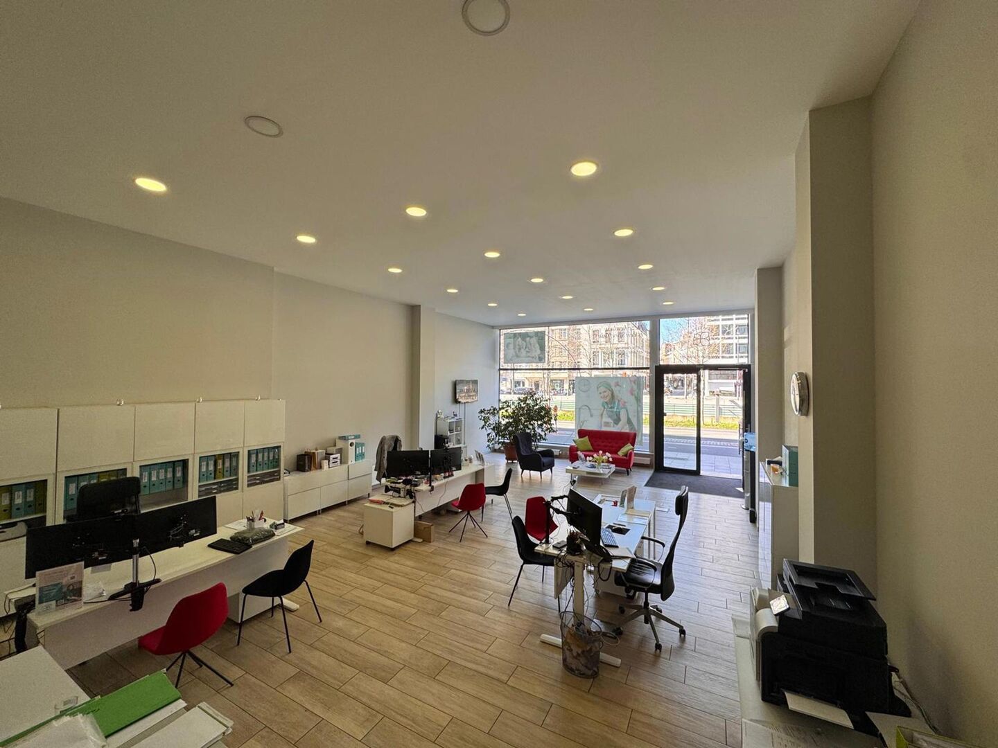 De ruimte is praktisch ingedeeld. Vooraan bevindt zich een ruime open kantoorzone die flexibel kan worden ingericht als open workspace, showroom of praktijkruimte. Daarnaast zijn er aparte kantoorruimtes voorzien die zich perfect lenen voor overleg of werk in alle privacy.