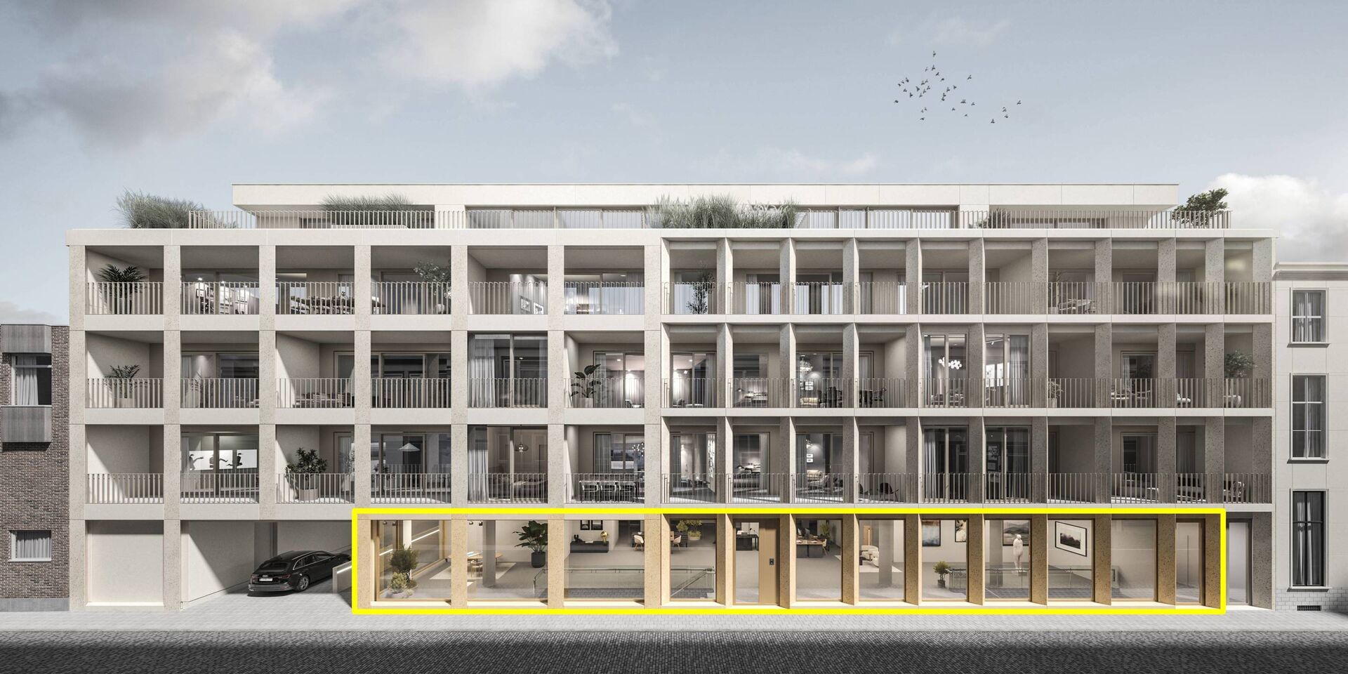Met een totale oppervlakte van ca. 943 m², waarvan ca. 555 m² op het gelijkvloers en ca. 388 m² op een ondergrondse verdieping met daglicht, biedt deze ruimte talloze mogelijkheden. U kunt ze flexibel inrichten als kantoor voor een vrij beroep, atelier, co-workingconcept of praktijkruimte.
