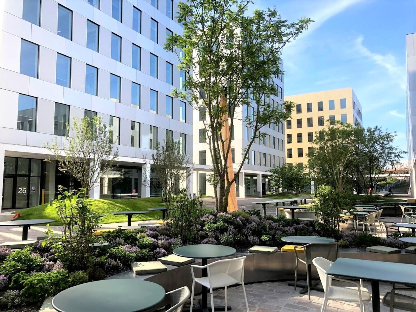 Huidige bedrijven op deze site zijn onder andere Coolblue, Syntra, Kuehne+Nagel, Spaces (businesscenter), Queromedia, Proximus, Ernst & Young, Onlyhumans, KPMG, Crelan, Radisson Hotel Antwerp Berchem, Contemporary Food Experience en Lidl.