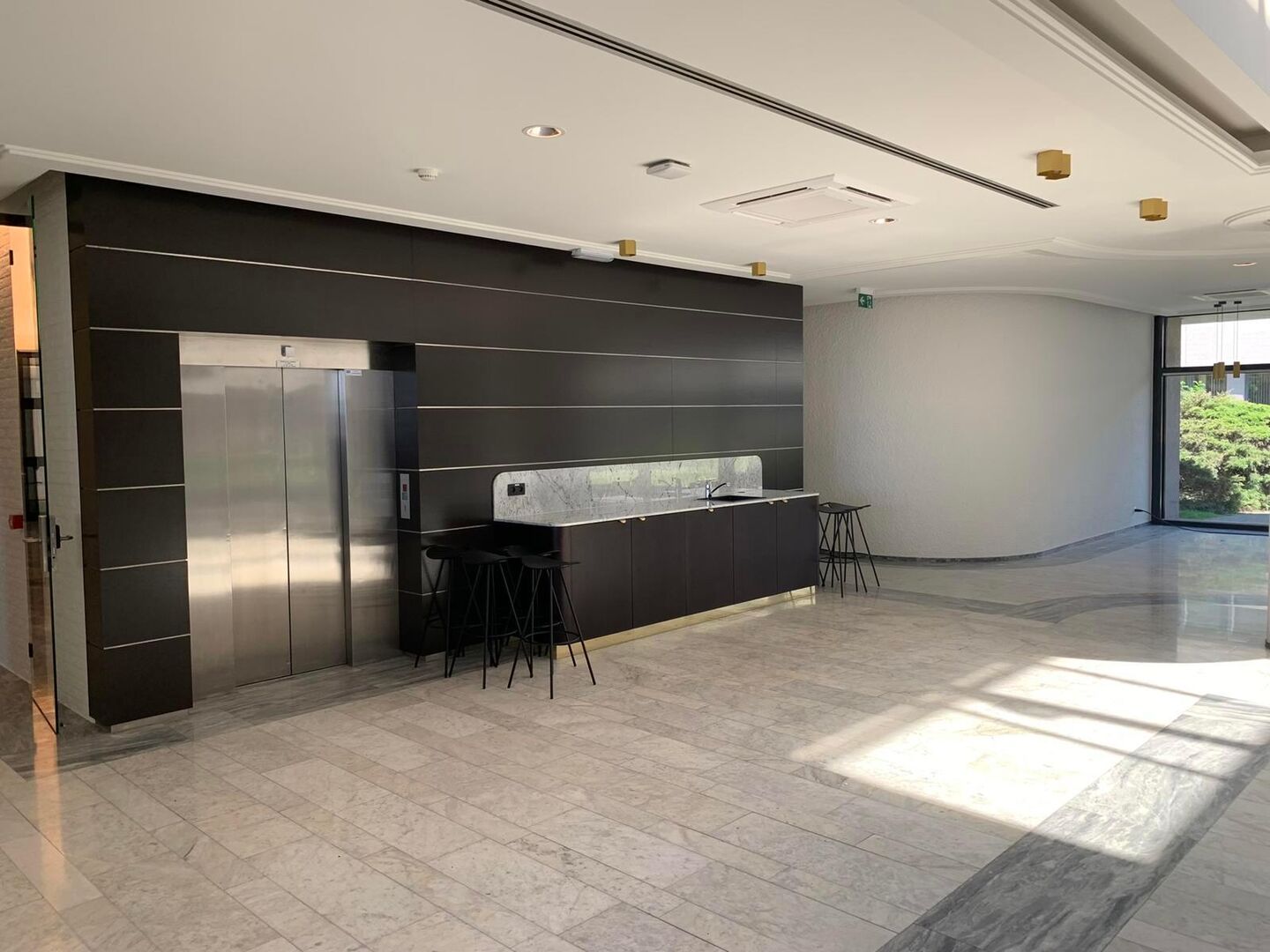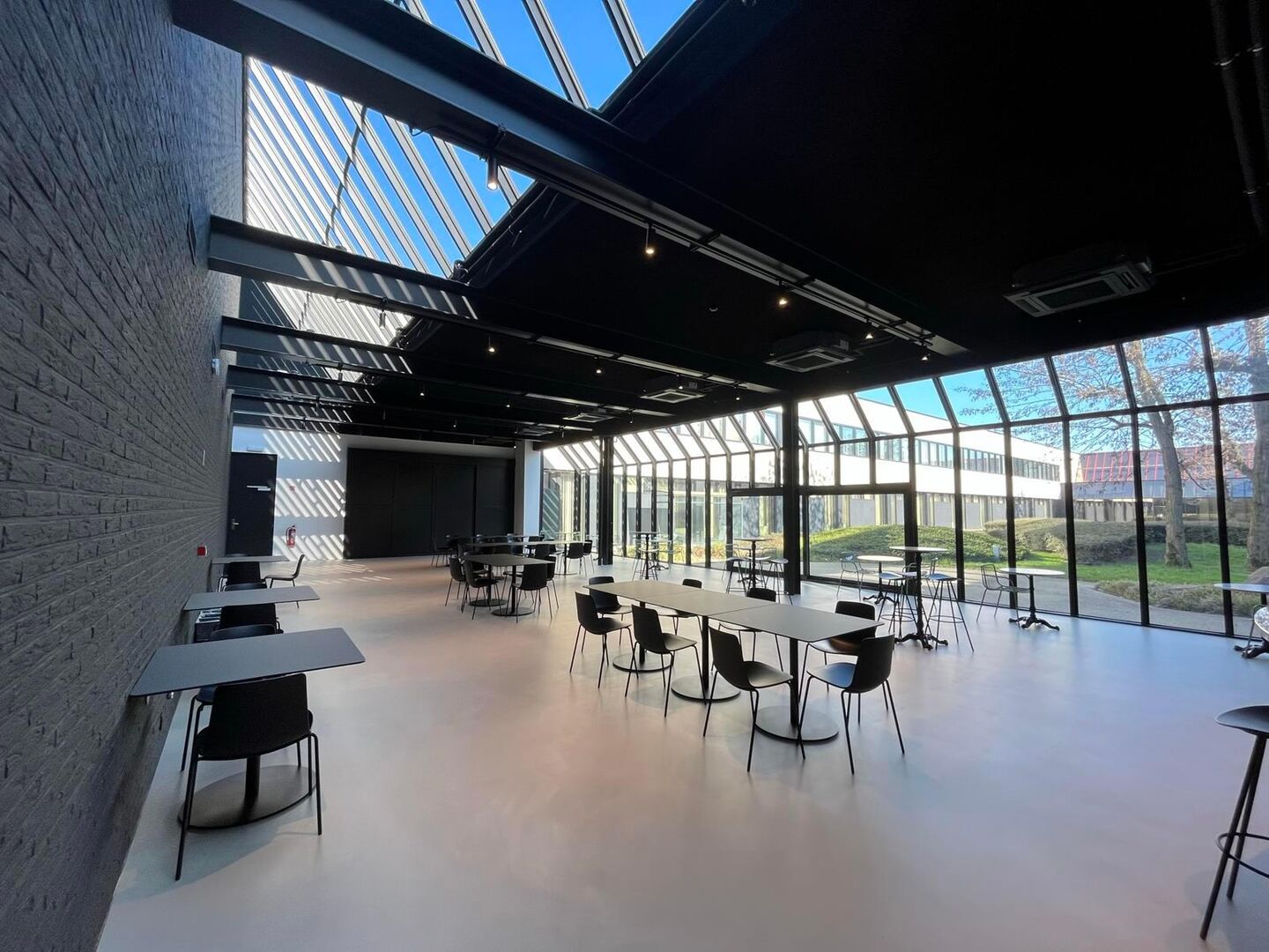 Dit onlangs gerenoveerde gebouw biedt een privatieve ruimte aan tot ca. 913 m², met daarnaast ook een grote gemeenschappelijke ruimte van ca. 1.425 m². Het gebruik van laatstvermelde ruimte is inbegrepen in de maandelijkse lasten.